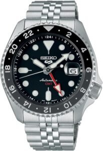 El Seiko SSK001K1 es una excelente opción para quienes buscan un reloj versátil con función GMT, ideal para viajeros y entusiastas de la relojería. Su bisel bicolor permite un fácil seguimiento de un segundo huso horario, mientras que su movimiento automático ofrece precisión y fiabilidad sin necesidad de baterías.
