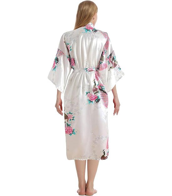 Trifolium Bata Kimono y Camisón de Seda Satinada con Estampado de Pavo Real para la Boda